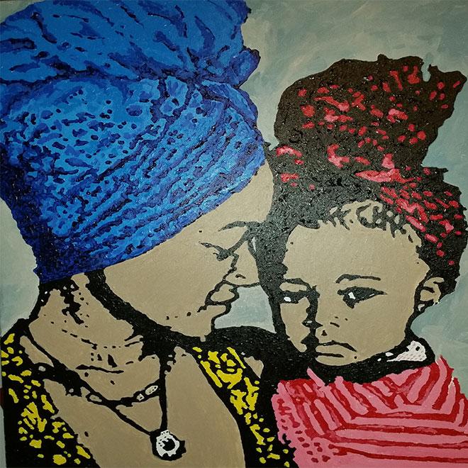 Afro Royalty Portrait – Mother and Child Giclée Print Canvas